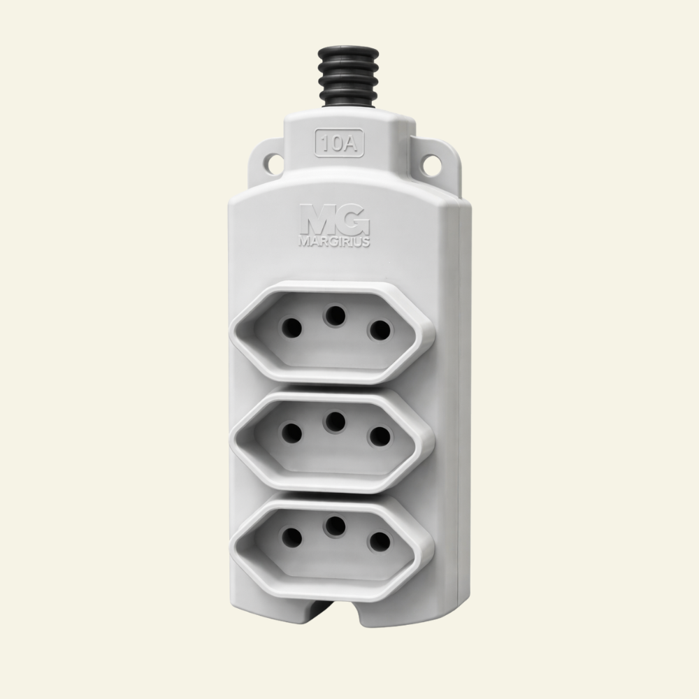 Desenvolvida para facilitar a conexão de até três aparelhos simultaneamente, otimizando o uso de tomadas em ambientes residenciais ou profissionais.